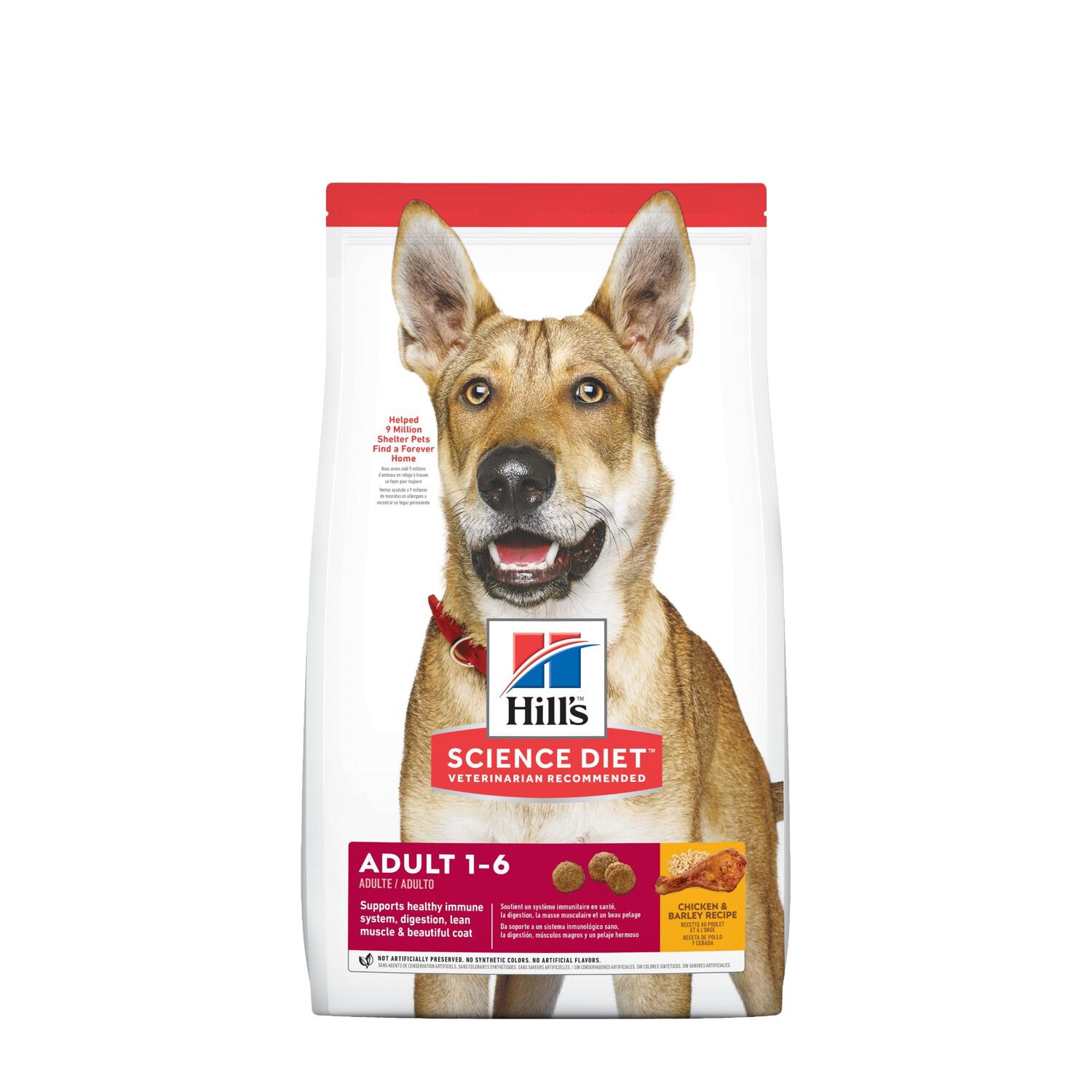 When your dog is in the prime of his life, he needs a quality dog food that keeps up. Hill’s Science Diet Adult dry dog food uses a high quality protein source for lean muscles, natural fibers for healthy digestion and omega-6s for a beautiful coat. Specially formulated to make grown dogs come running for mealtime, this adult food provides the right balance of nutrients to help your grown-up dog live a happy, healthy life. Science Diet dog food made with natural ingredients is formulated for a great taste adult dogs love. There’s more to love with the new look of Science Diet.