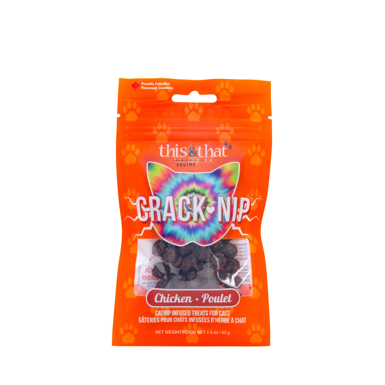 Crack-Nip Cat Treats is available in a 1.5 oz (43 g) bag.