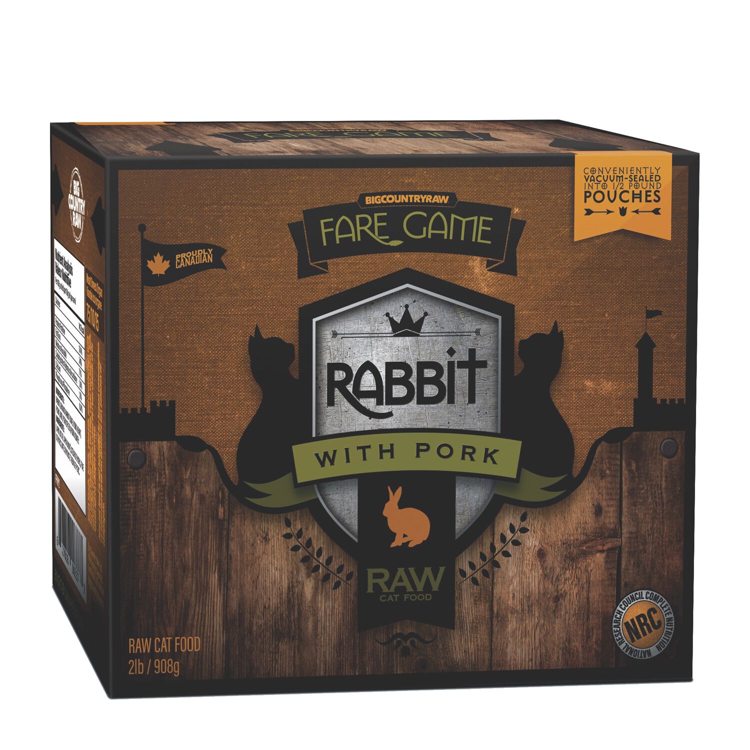 A blend of Canadian rabbit with pork organ meat with barley grass and wheatgrass. Packaged in ½ lb portions each 2 lb carton contains 4 vacuum-sealed packs.