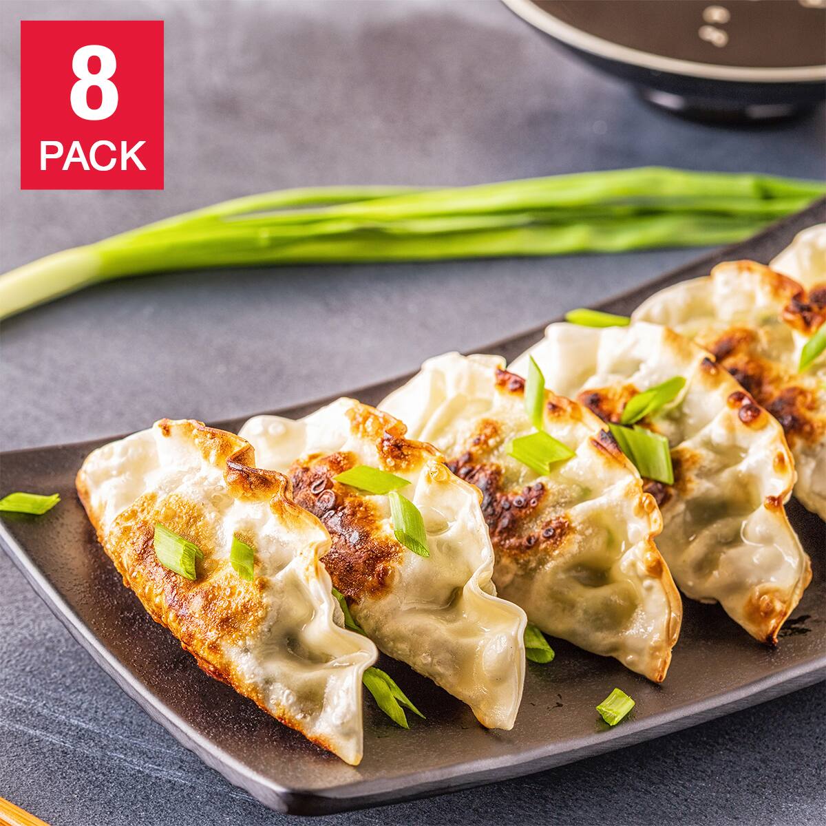 Total of 8 x 1 kg (2.2 lb) bags, 4 bags of each: Pork & Vegetable and Chicken & Vegetable dumplings