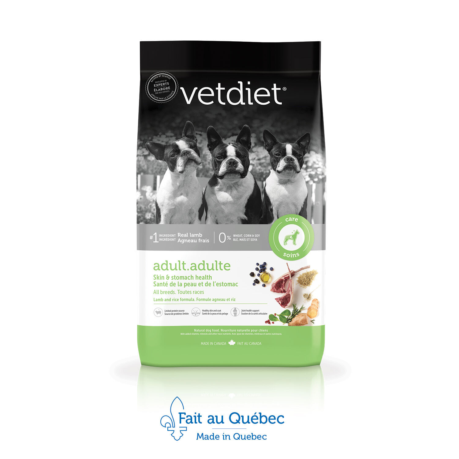 Vetdiet® adult skin and stomach health dog food lamb and rice formula is specially formulated with lamb and other natural ingredients for dogs with special digestive and dermal needs.