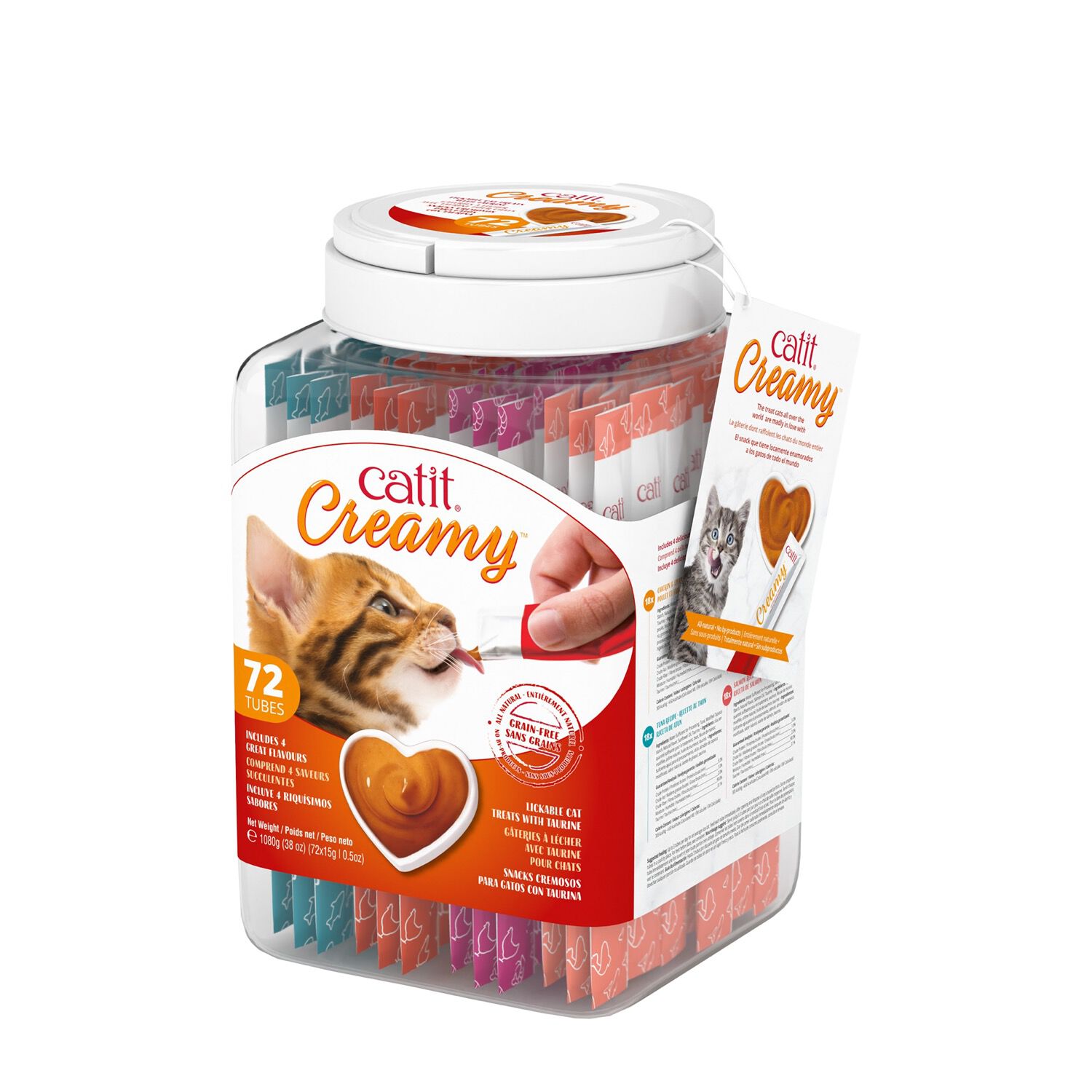 Catit Creamy Lickable Treats, Gift Jar of 72 x 15g Tubes, Assorted Flavours.