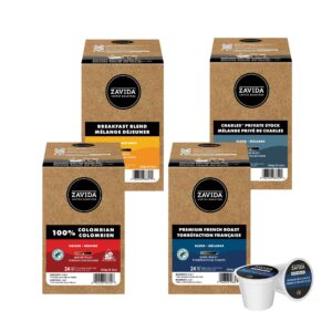 - Variety Pack: Colombian (24), French Roast (24), Hazelnut Vanilla (24), Canadian Maple (24)